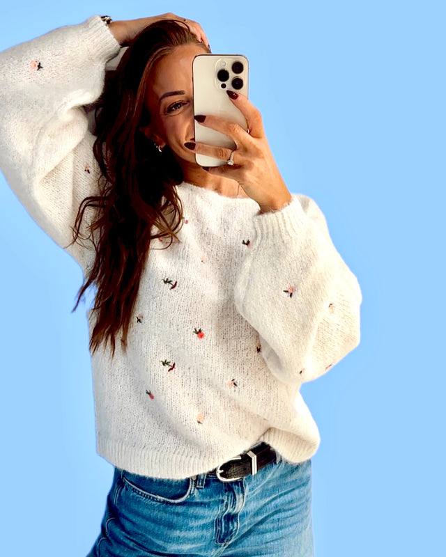 MONIE FLORAL O-NECK Hvit